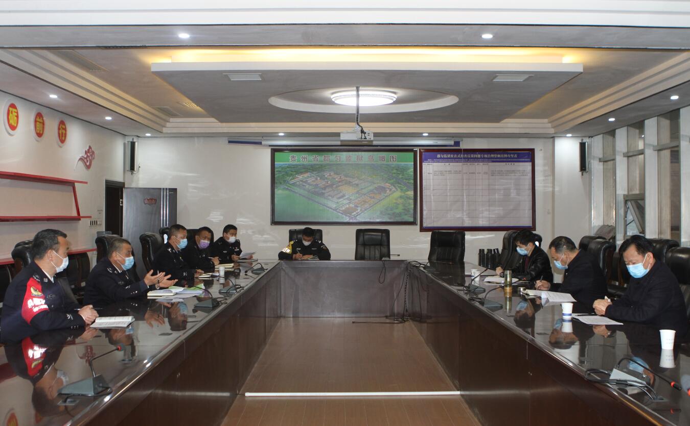 图为:冯小山副厅长听取都匀强戒所疫情防控工作情况汇报